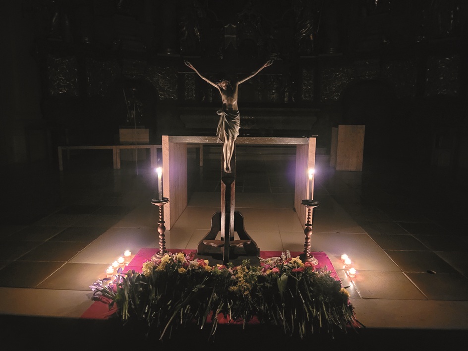 Am Gründonnerstag feierten wir gemeinsam das letzte Abendmahl mit Ölbergandacht. Wie gewohnt gab es auch heuer kleine Brote, die zum Teilen einluden, an den Ausgängen. Die großzügigen Spenden der Kirchberger beim Opfergang wurden heuer dazu verwendet, in Kirchberg Gutes zu tun, und kamen einer Familie mit akutem Bedarf zugute. Die Stille am Karfreitag ist eines seiner „Markenzeichen“, so begann und endete er in Stille. Die Lesung der Leidensgeschichte, die Kreuzenthüllung, die Kreuzverehrung und die großen Fürbitten fokussierten uns dann auf die zentralen Geschehnisse.